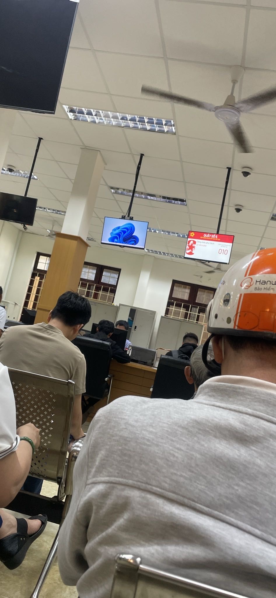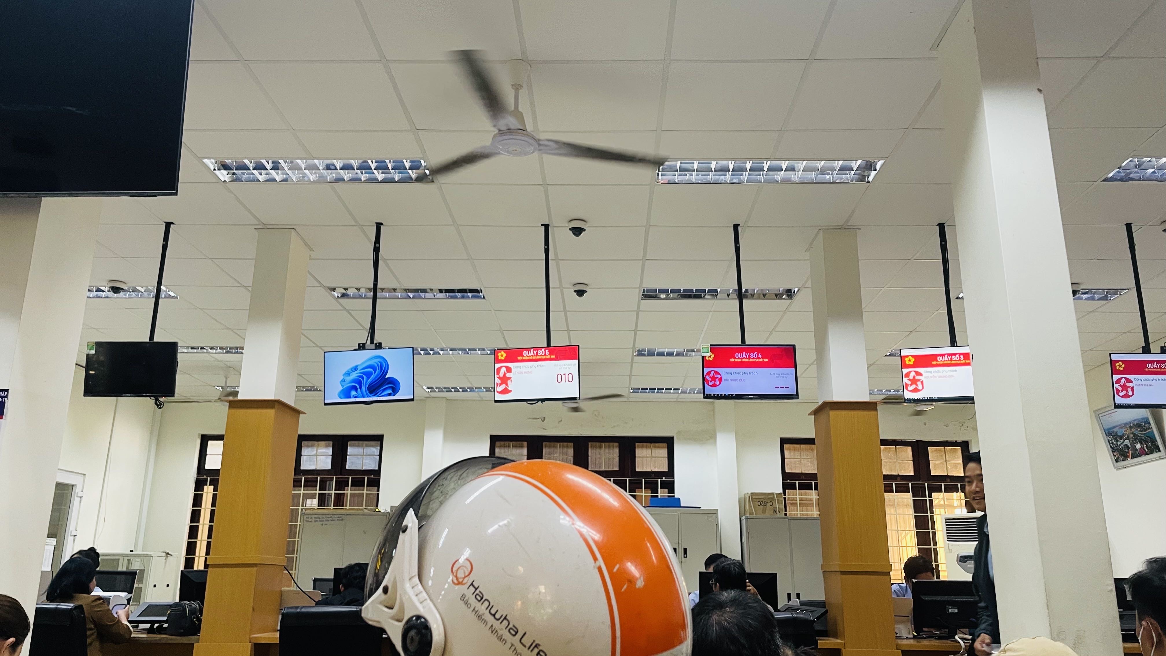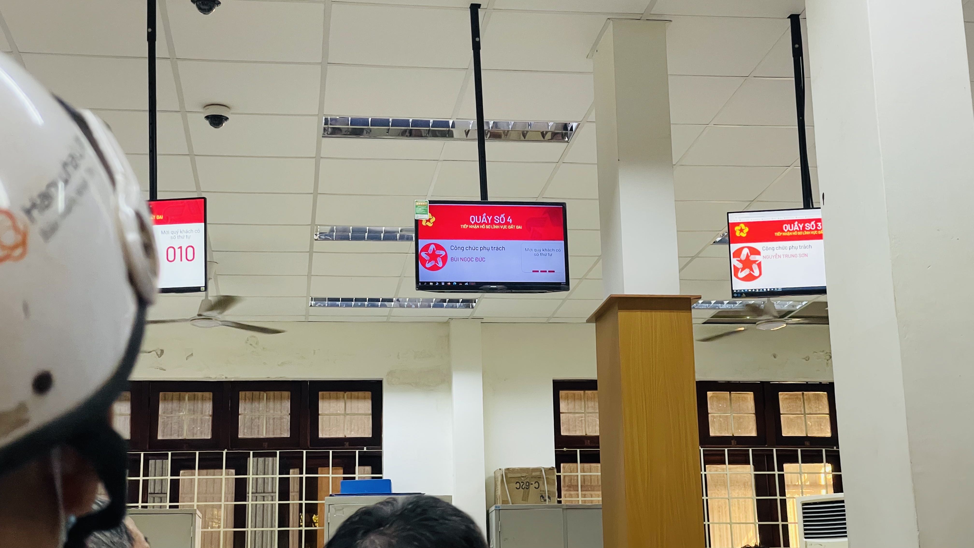 bộ phận tiếp nhận và trả kết quả, từ quầy số 3 đến số 9 chỉ có quầy số 5 hiển thị số, cả phòng ồn ào, ko thể nghe công chức đọc số đầy đủ cho ng dân đc
